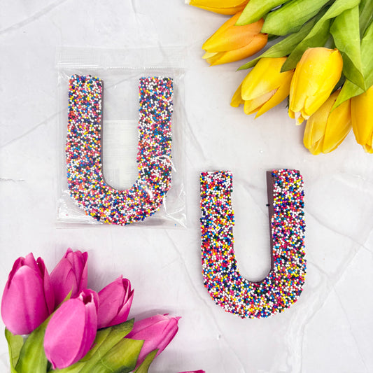 Milk Chocolate Letter U with Sprinkles