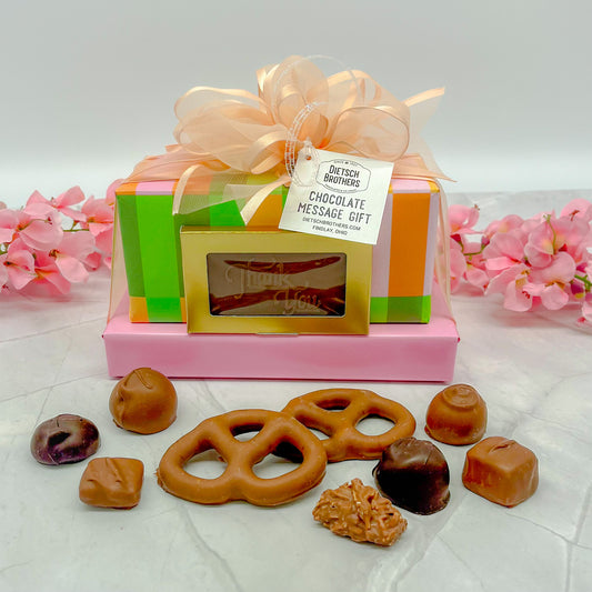 Here you will find a collection of best selling gift ideas, both small and large, for employees, customers and associates. Some items, like our chocolate bars and small (four and six piece) candy boxes can be customized with your logo and/or message. If you need to have candy shipped either individually or to an office, we can help you with that too. Email us at website@dietschs.com for more information.