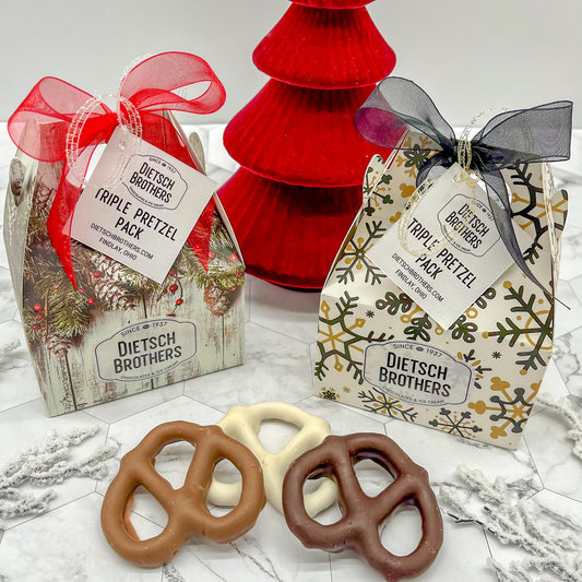 You've found it, the chocolate treat that everyone talks about when you mention our name and the most popular item by far that we sell. Our chocolate covered pretzels make a wonderful gift for any occasion and are available in multiple flavors and sizes.