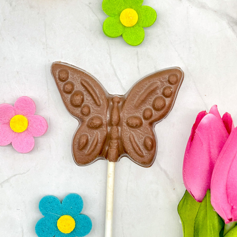 These solid milk chocolate suckers weigh .05 lb. and are 2.5" x 2" in size.