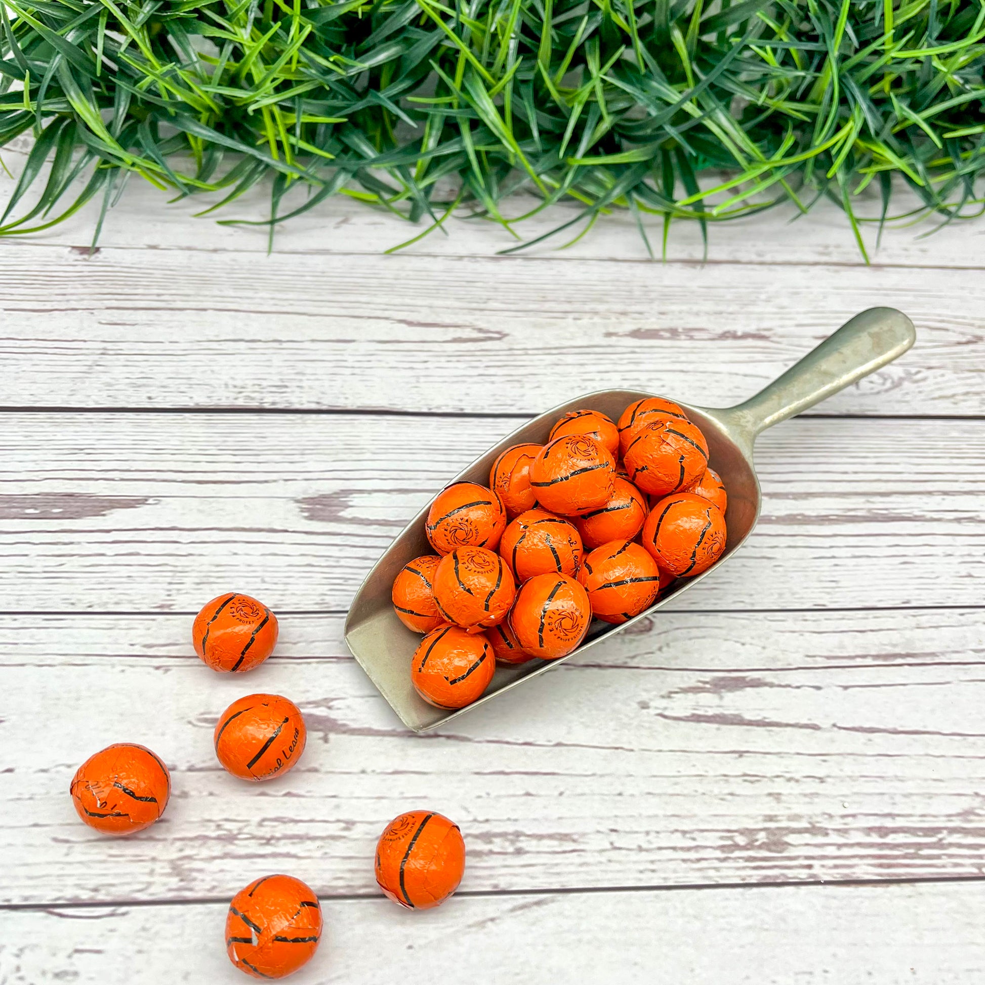 These foil wrapped candies are filled with solid milk chocolate. There are about 80 balls per pound. These make a treat for any basketball player, fan or coach.