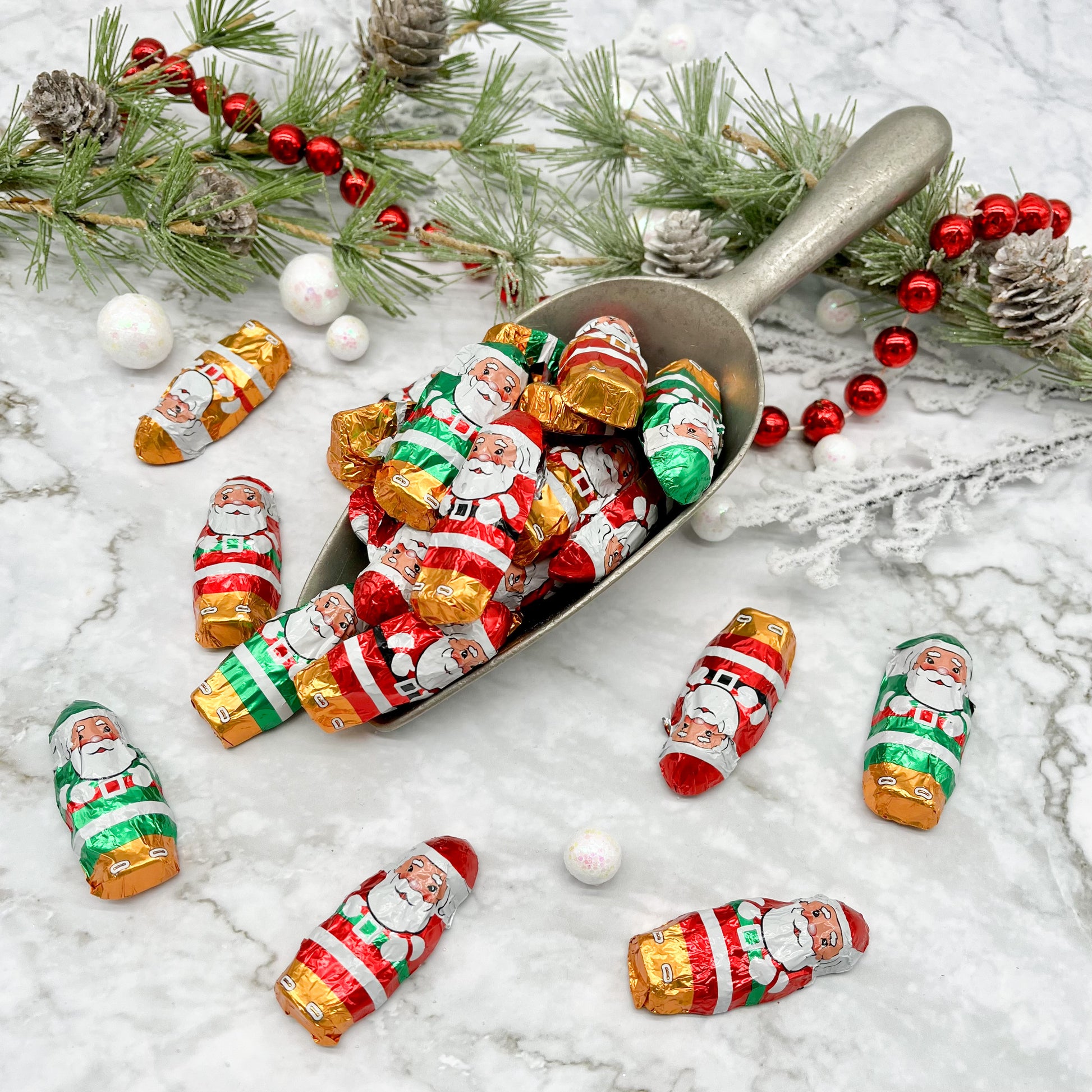 These foil wrapped milk chocolate Santa characters make a great stocking stuffer or fun addition to any holiday gathering. They are available in 1/2 lb. and 1 lb. bags.