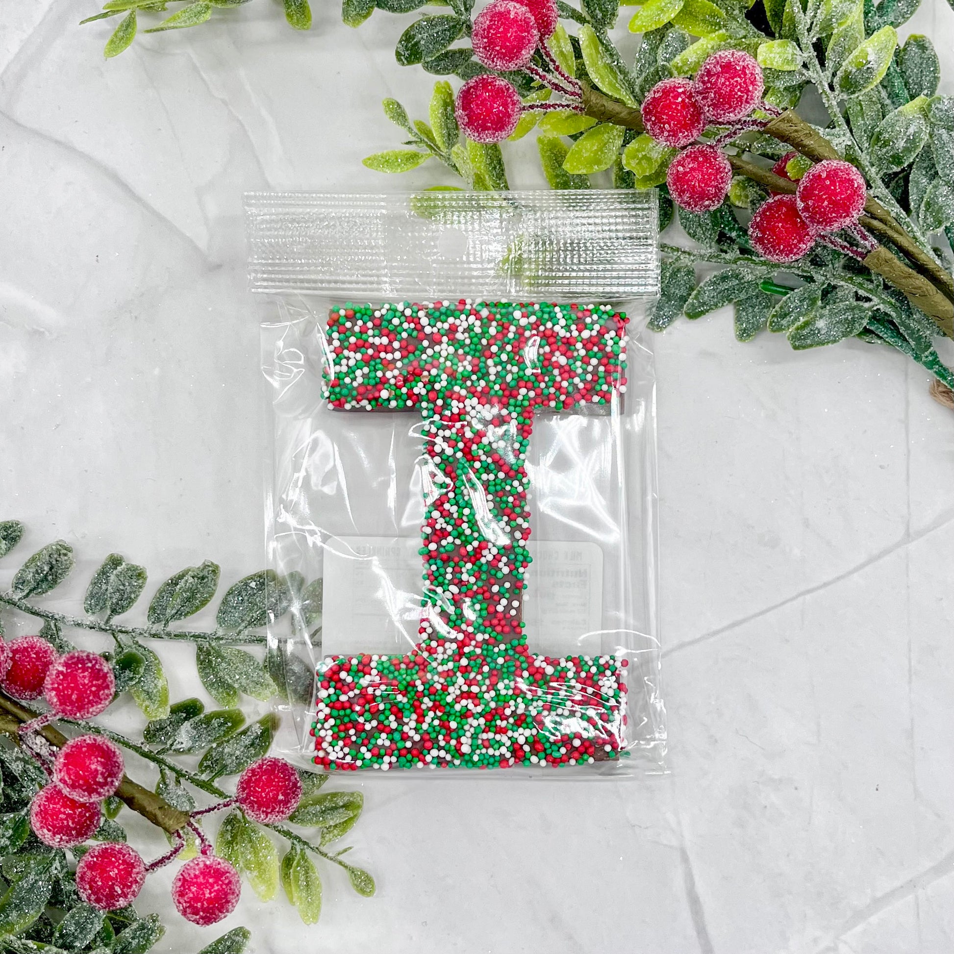 These 4" tall modern block letters have a layer of decorative holiday sprinkles on the front of them and make a great gift.