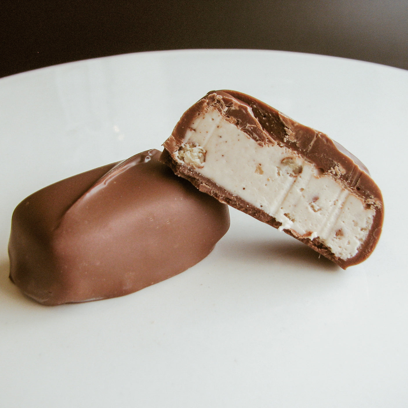 This thick rectangular piece is marked with one line and has a soft center made with local honey and has pecan pieces mixed throughout.
