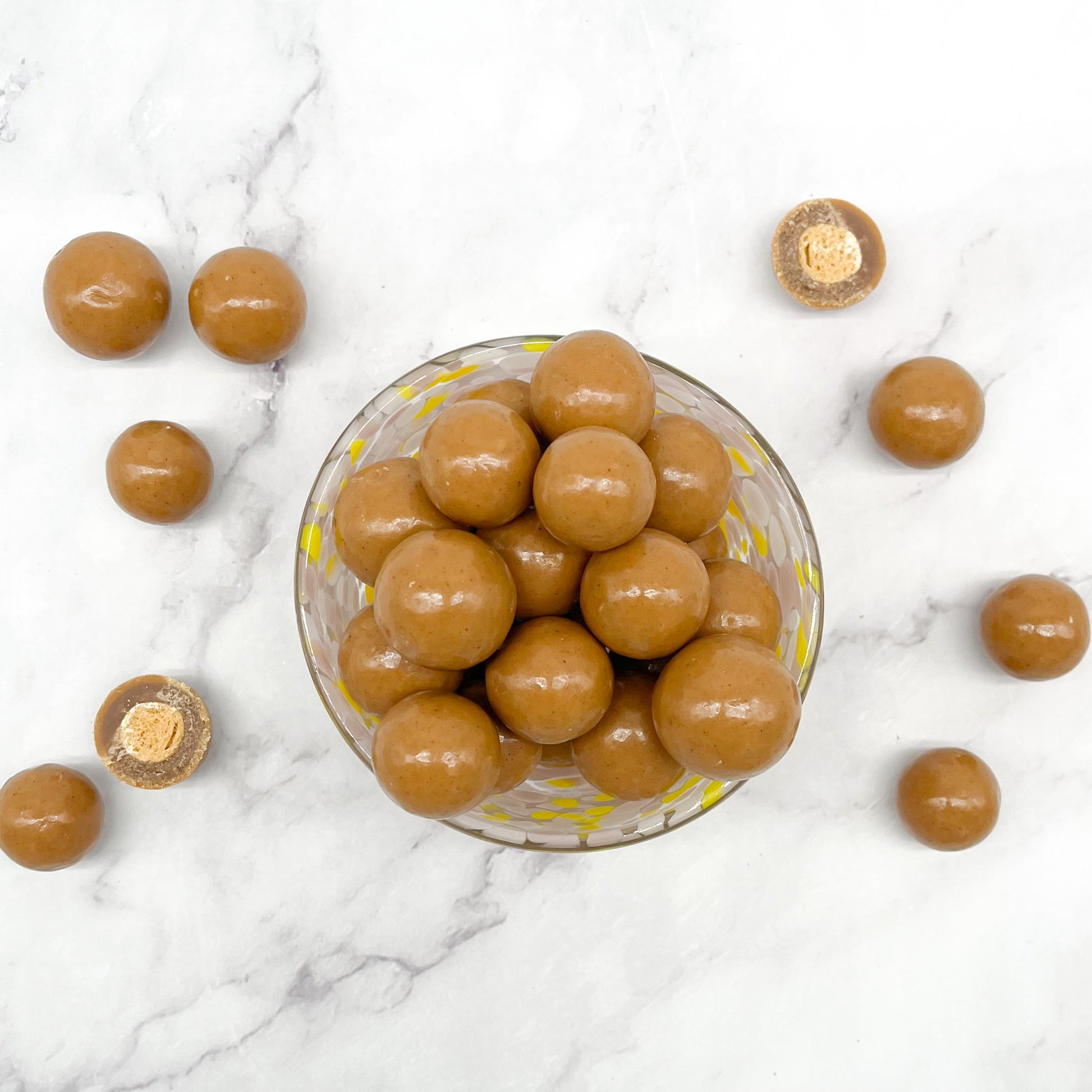 These extra large malt balls are not only dipped in milk chocolate but are then dunked in a peanut butter coating to create an extra sweet treat.