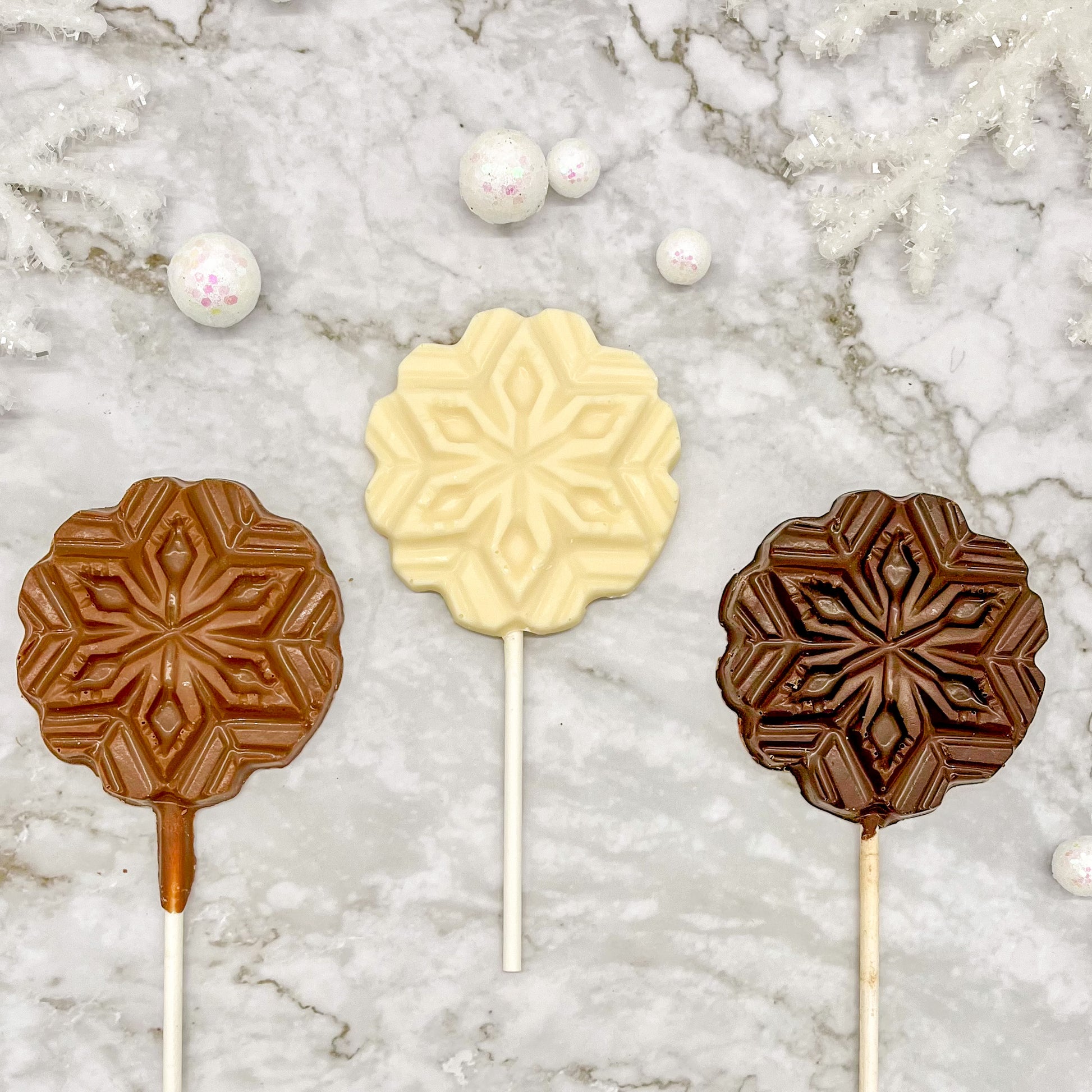 These snowflake suckers weigh .08 lb. and are 3" x 3" in size. They make a great stocking stuffer or party favor.