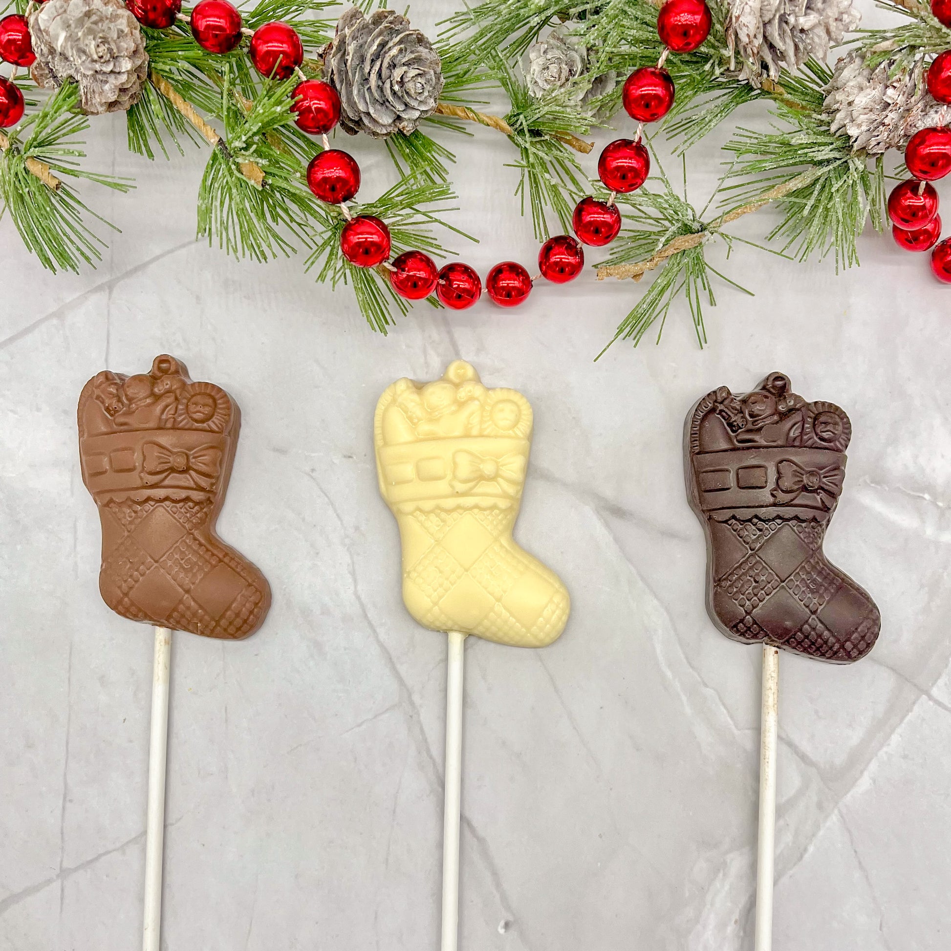 These new stocking suckers weigh .06 lb. and are 2" x 2" in size. They make a great stocking stuffer or holiday gift.