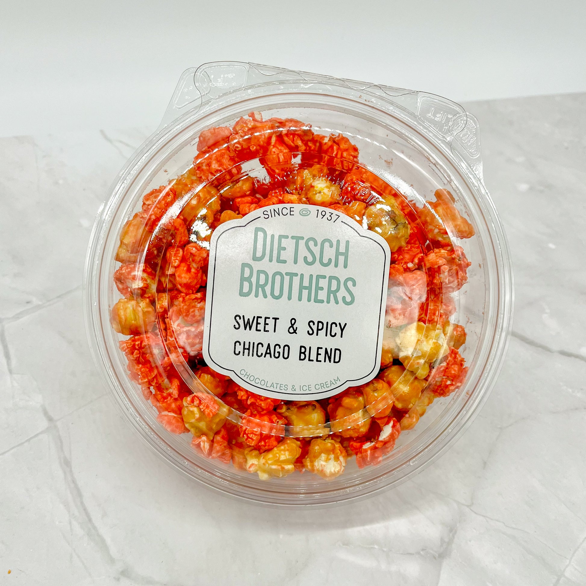 Our latest popcorn variety is a mixture of cheddar popcorn with a little burst of heat at the end and sweet caramel corn. These .35 lb containers make a fun gift or snack.