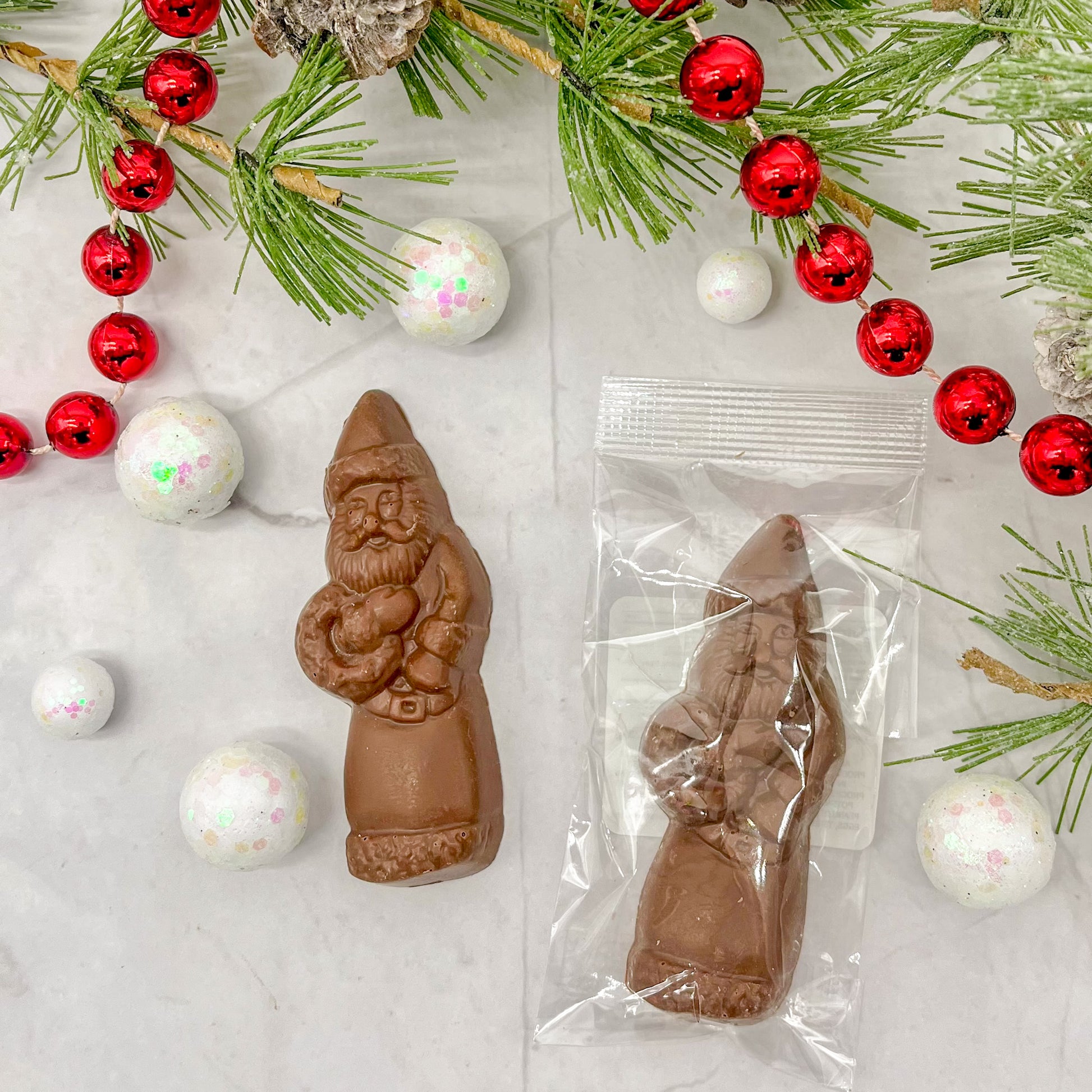 These petite, solid Santa molds weigh .05 lb. and are 3" tall and 1 1/4" wide. They make a nice little stocking stuffer or addition to any dessert tray.